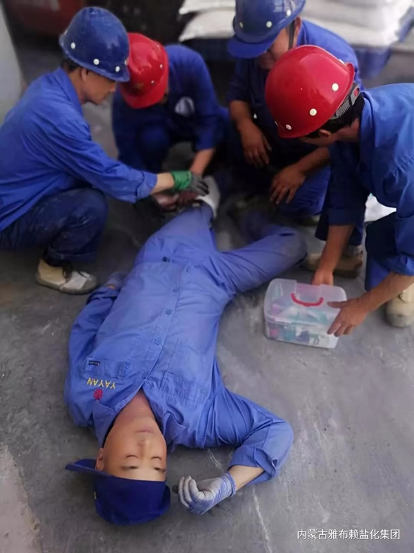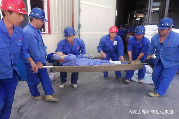 本次演练真实还原精盐生产过程中托盘盐垛滑落致使员工砸伤的场景,在整个演练过程中,分厂负责人、班组成员严格按程序实施了及时、有效的自救,达到了演练的目的和要求。