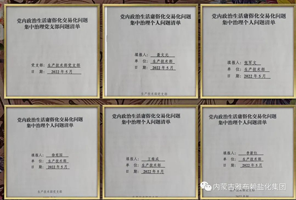 党员干部认真对照党内政治生活庸俗化交易化问题清单中列举的“圈子文化”、“酒桌文化”、“码头文化”等11个方面问题、54种具体情形,进行了深刻反思,自查自纠,主动带头承诺践诺,列出了问题清单,制定了整改台账,切实提高集中治理的精准性和针对性。